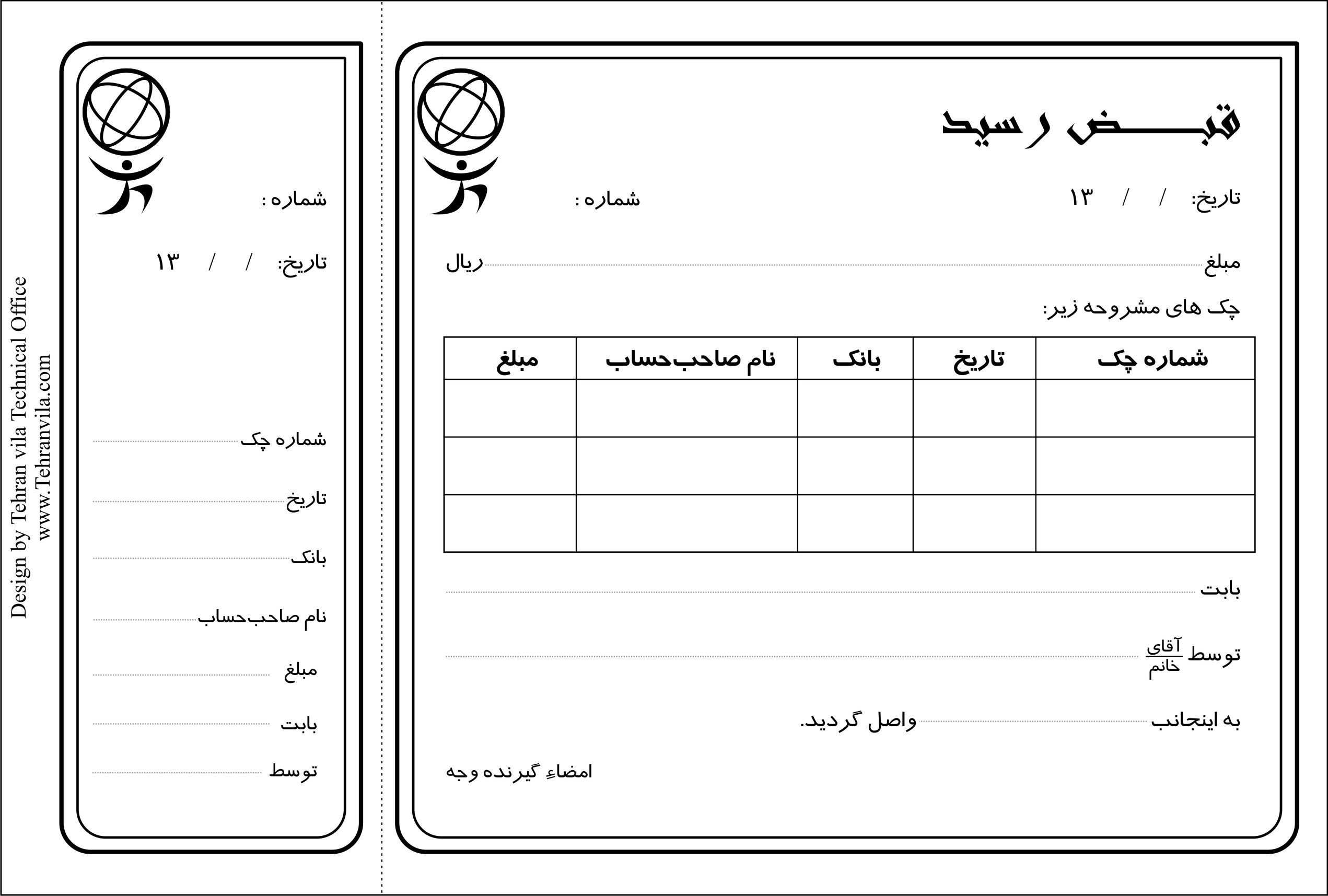 به منظور سفارش چاپ قبض دریافت وجه نقد یا چک در تيراژ ها و تعداد نسخه هاي دلخواه با دفتر فني تهران ويلا تماس حاصل بفرماييد