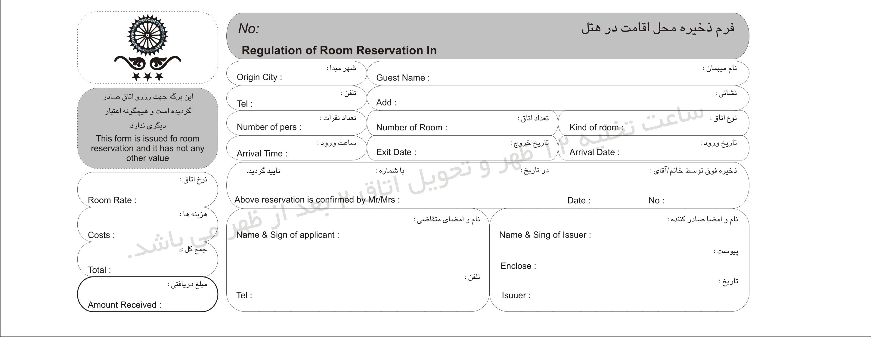 نمونه فرم لایه باز واچر هتل