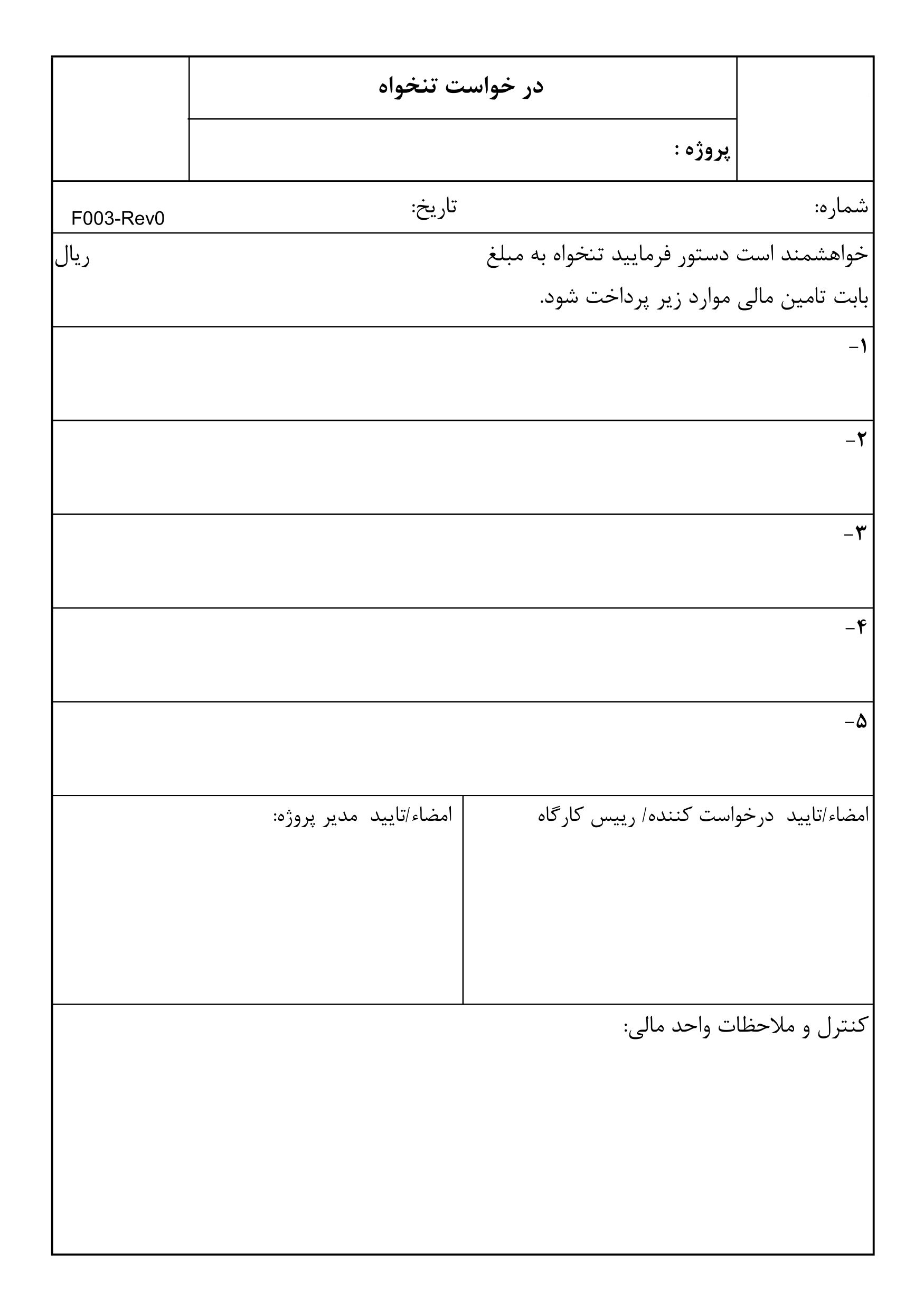 چاپ فرم درخواست تنخواه - قبض درخواست تنخواه