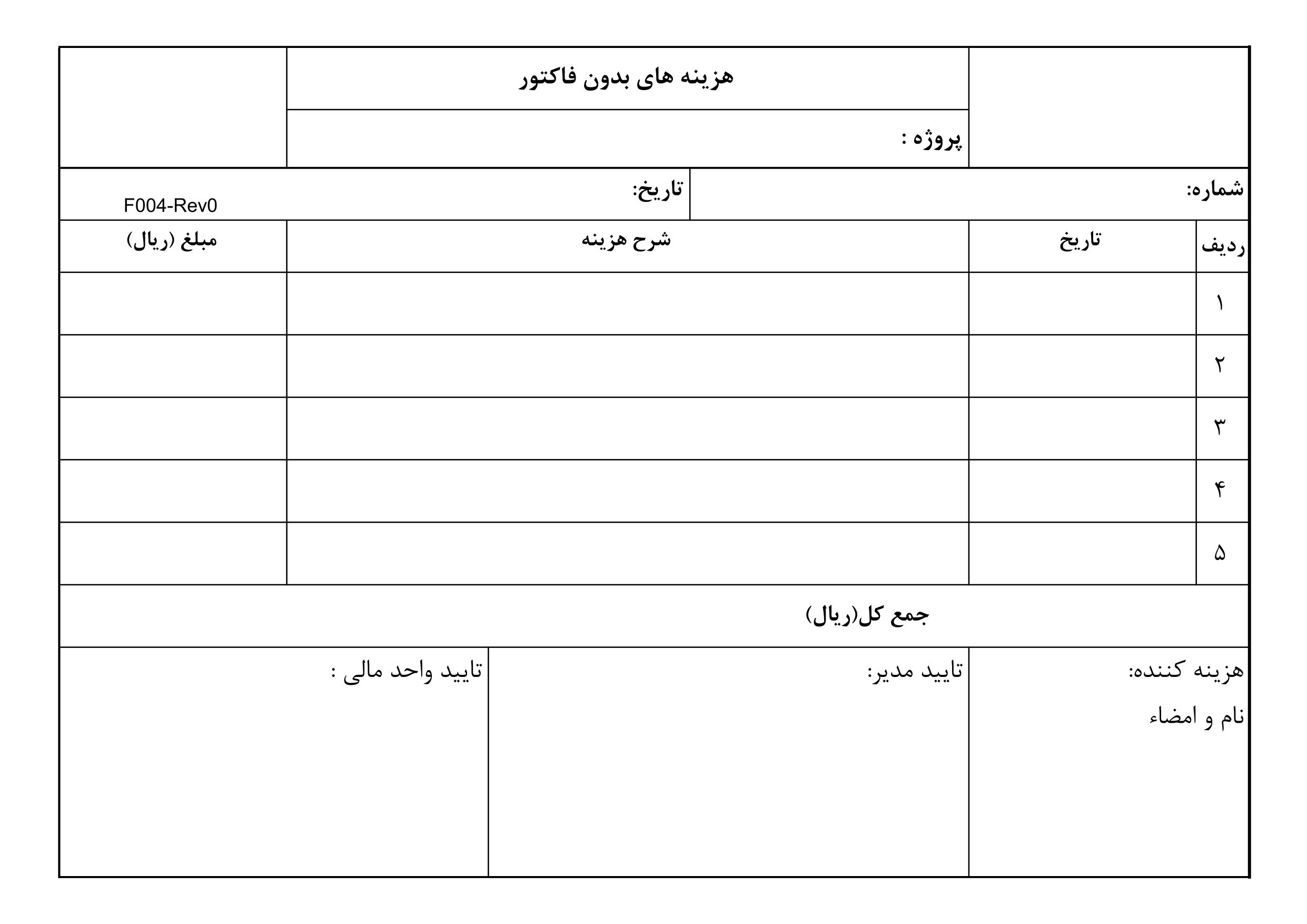 چسب ها : چاپ و یا دانلود فرم هزینه های بدون فاکتور ، فرم هزینه های بدون فاکتور ، چاپ فرم هزینه های بدون فاکتور ،دانلود فرم هزینه های بدون فاکتور