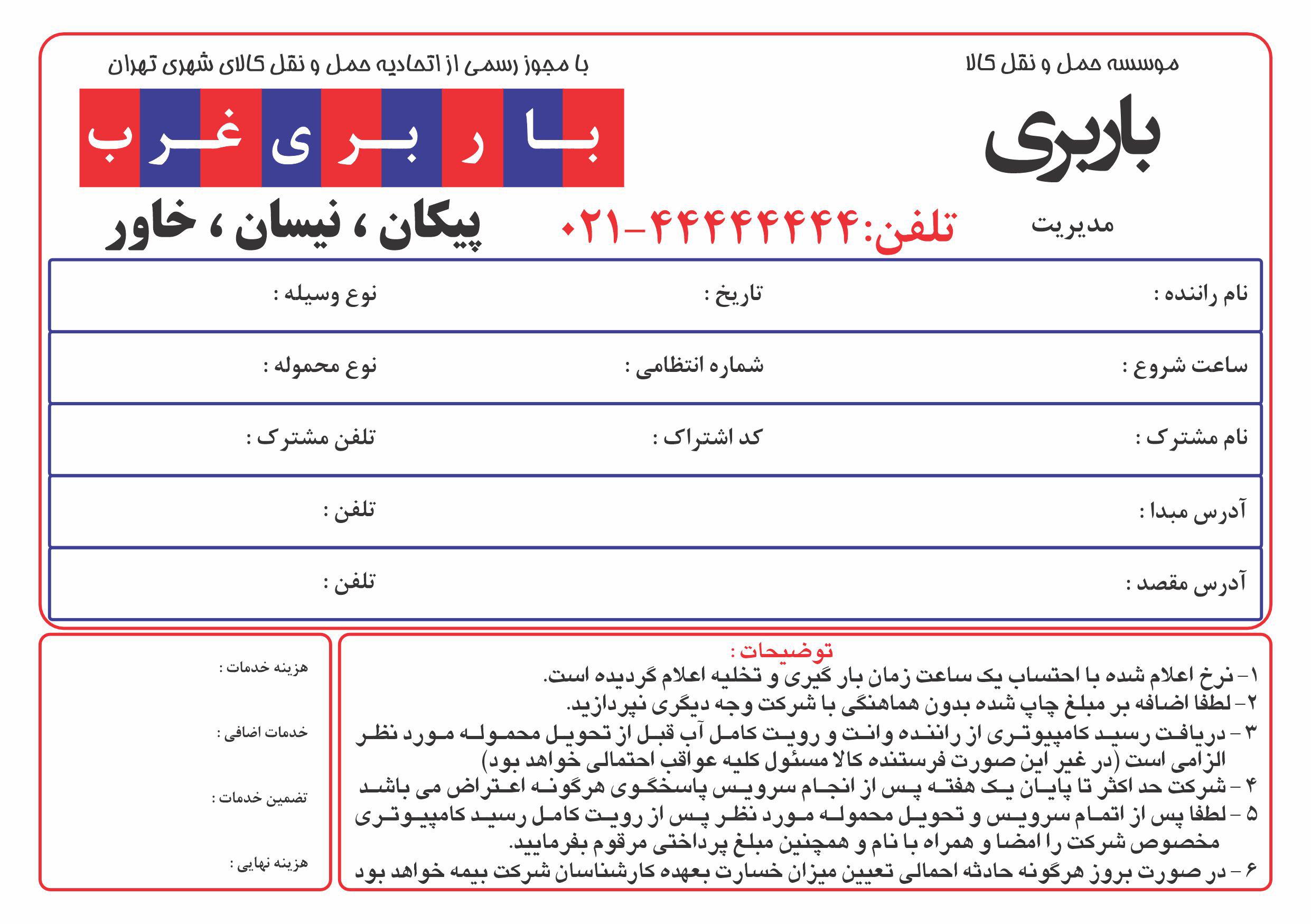 چسب ها : قبض بیجک ، قبض بارنامه ، حواله بارنامه ،چاپ بارنامه ، چاپ بیجک