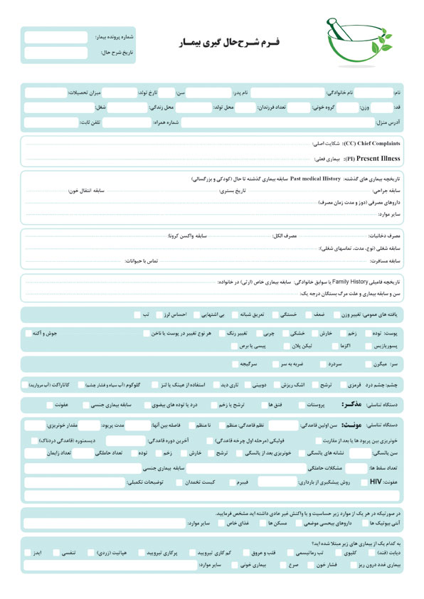 پرونده پزشکی مخصوص کسب اطلاعات و مشخصات بیمار جهت مطب ها و مراکز پزشکی